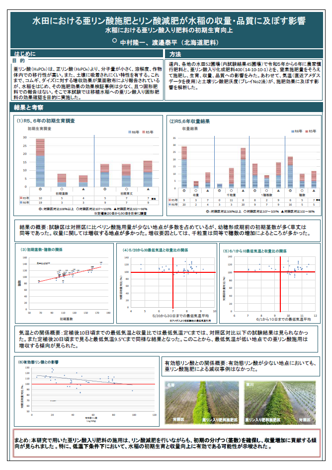 学会発表は研究機関が中心となる場ですが、今回は肥料メーカーとして唯一参加させていただきました。貴重な機会をいただけたことに感謝するとともに、持続可能な農業生産を支える技術の数々に触れ、弊社としても微力ながら生産現場に寄り添い、生産者に信頼される肥料メーカーであり続けたいと考えております。