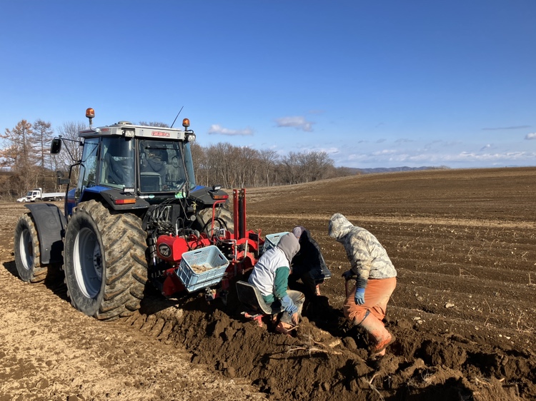 先日、幕別町の生産者さんにお伺いして、長芋の掘り取り作業を見学させていただきました。